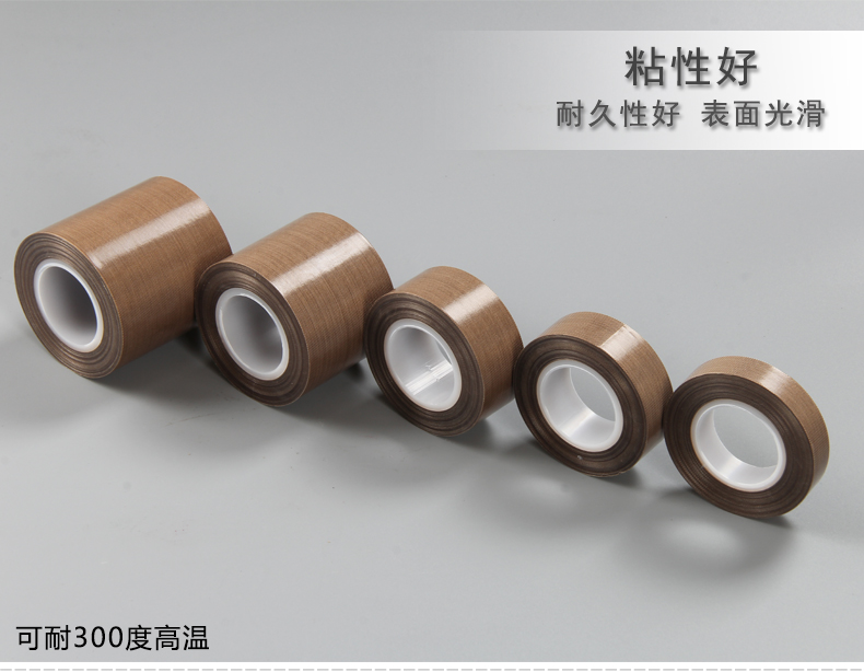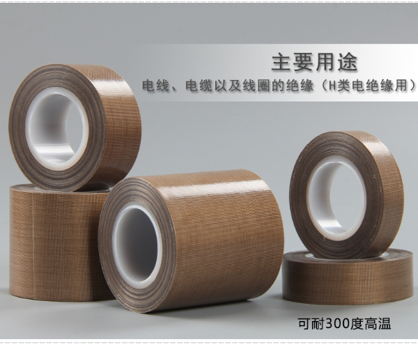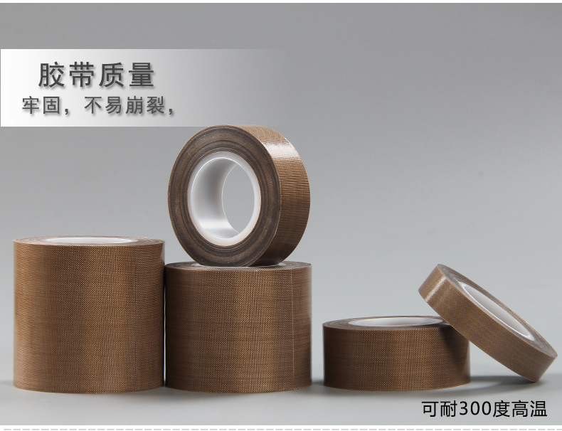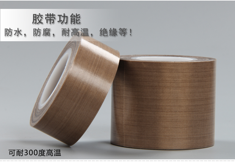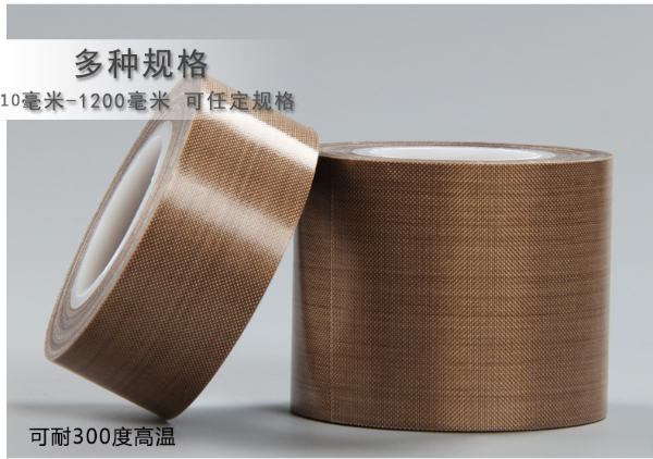 选用进口的玻璃纤维纱后涂覆特氟龙(PTFE)树脂,生产的特氟龙玻璃纤维胶带。一般卷材1米宽,50米每卷。颜色为咖啡色和黑色及白色三种,同时可以分切成各种宽度,并根据客户要求生产各种厚度的粘胶带。